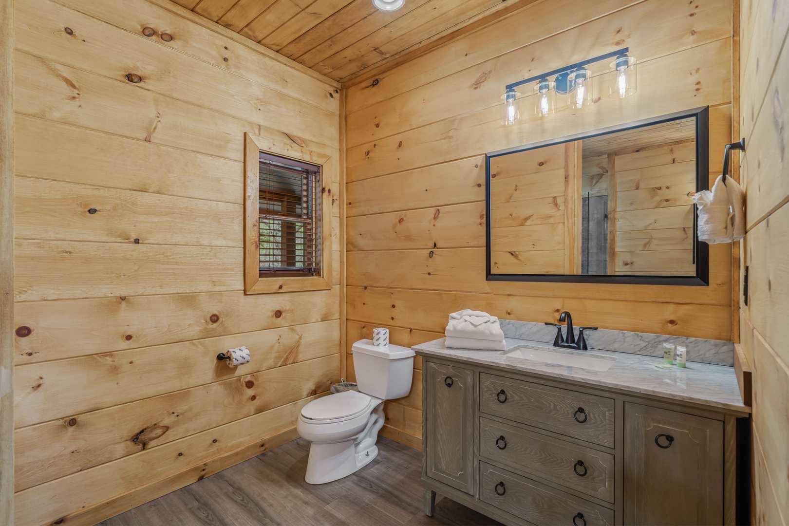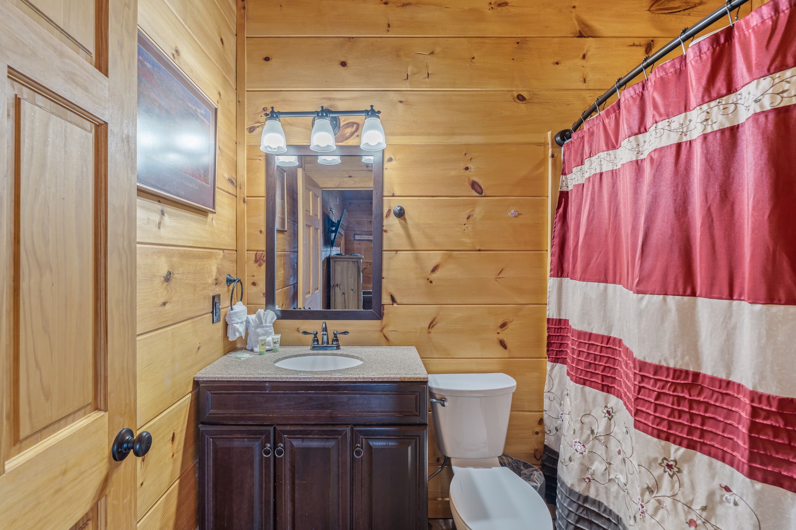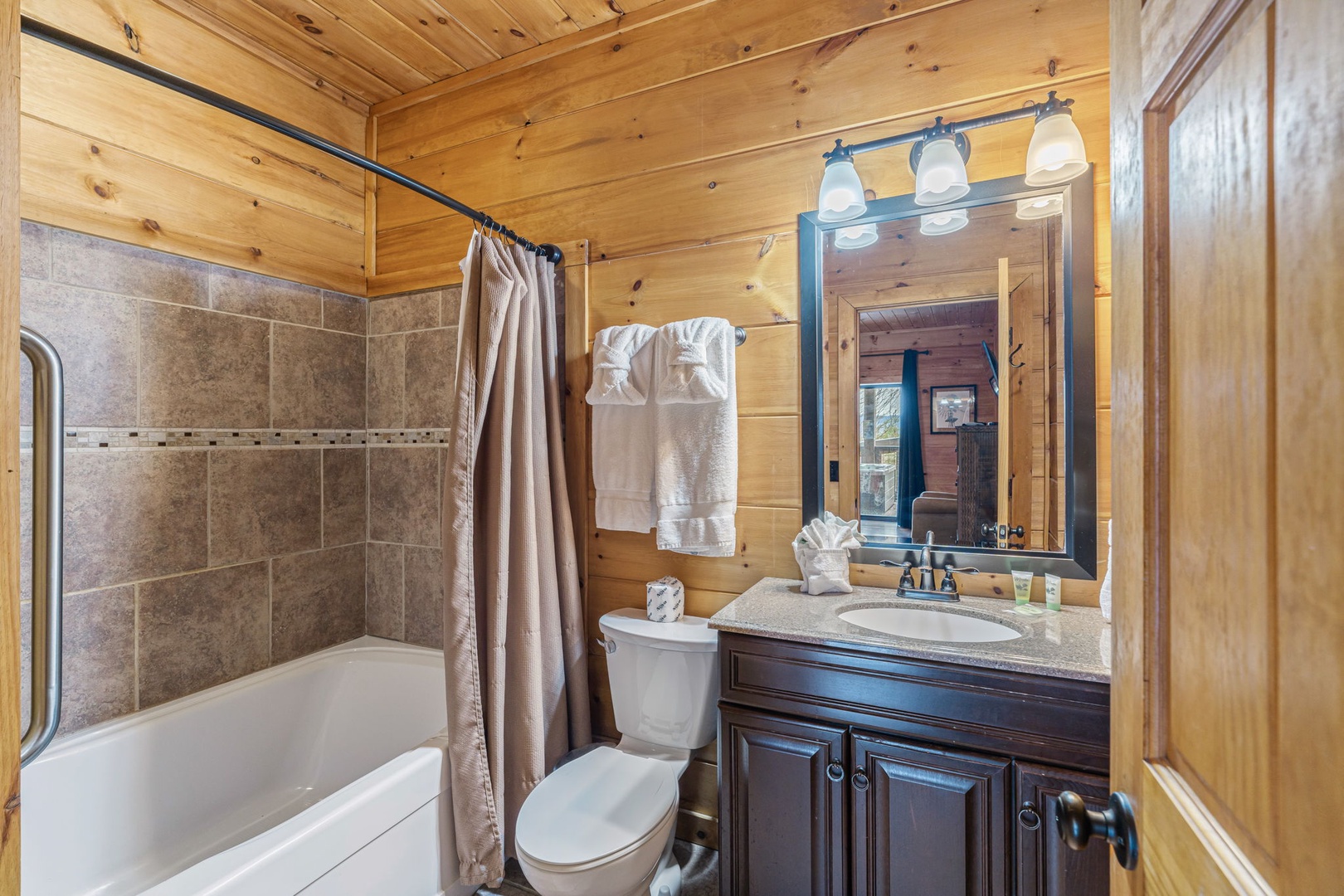 Additional shared bathrooms with shower/tub combinations plus a half bath on the main level provide convenience for larger groups.