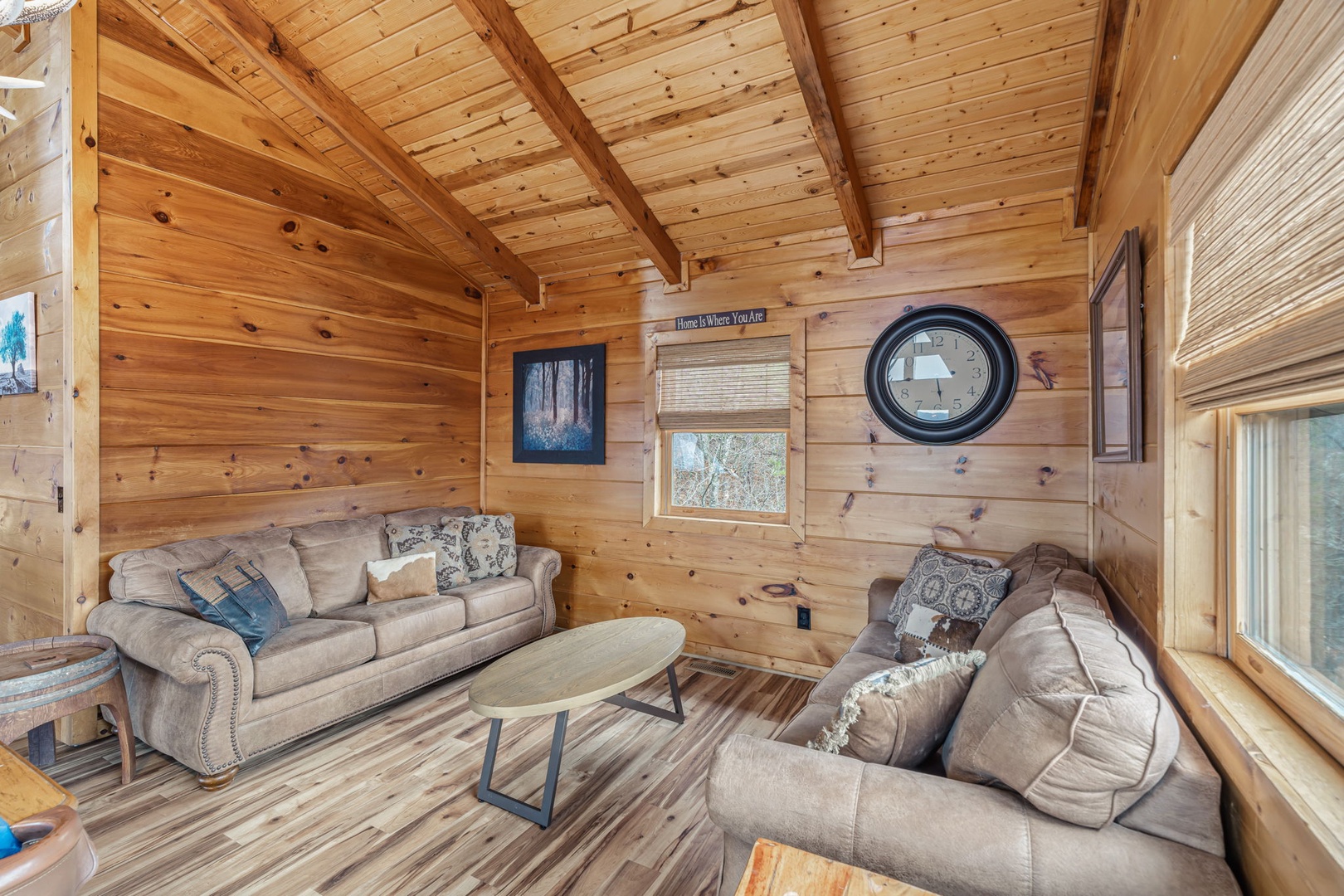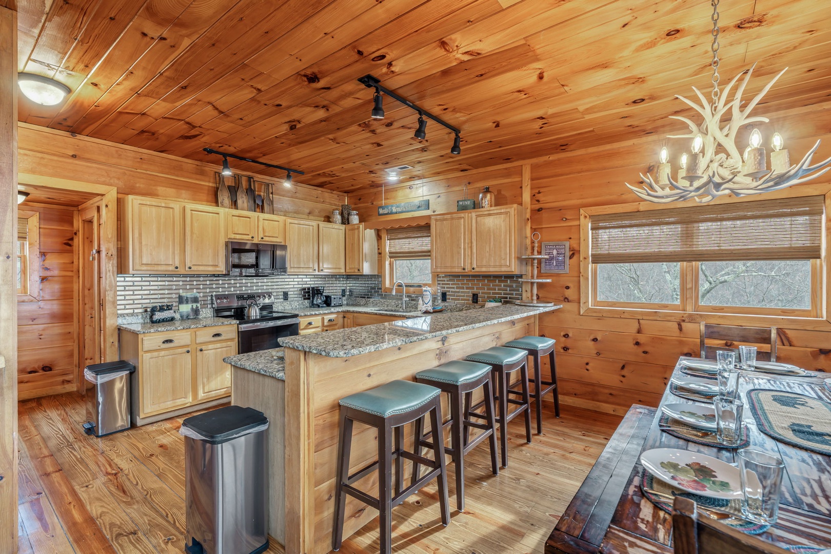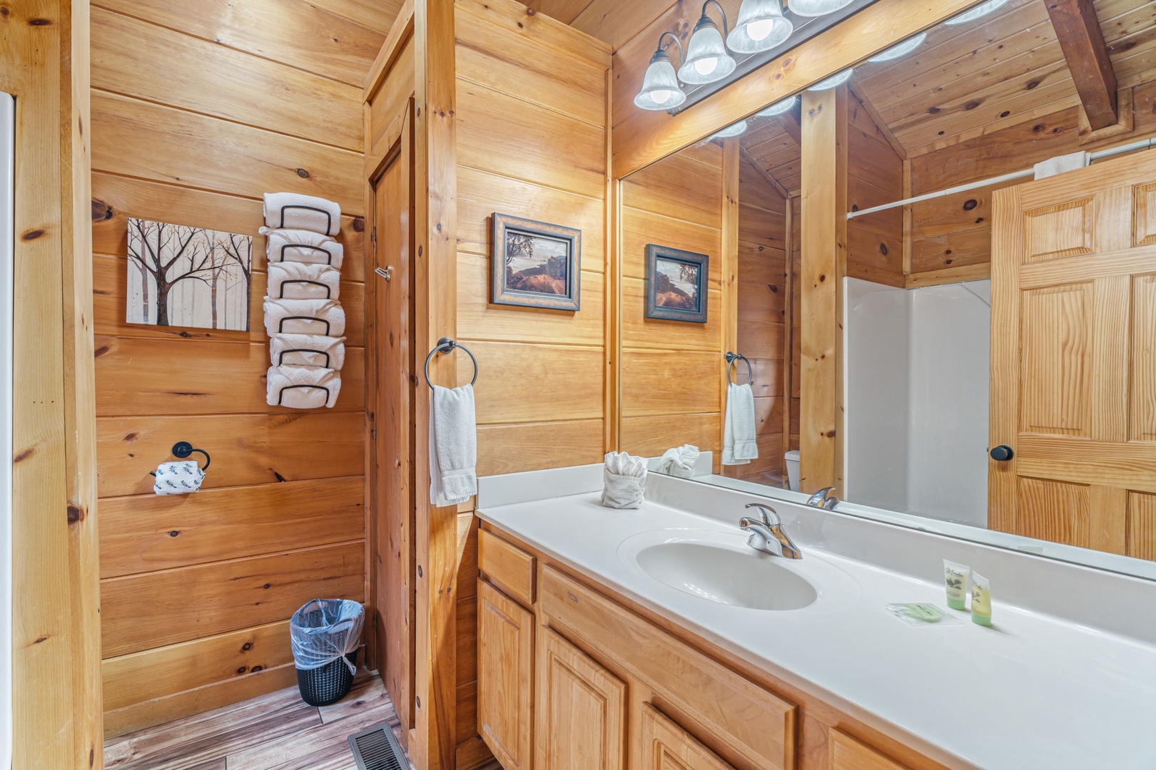 Additional shared bathrooms with shower/tub combinations plus a half bath on the main level provide convenience for larger groups.