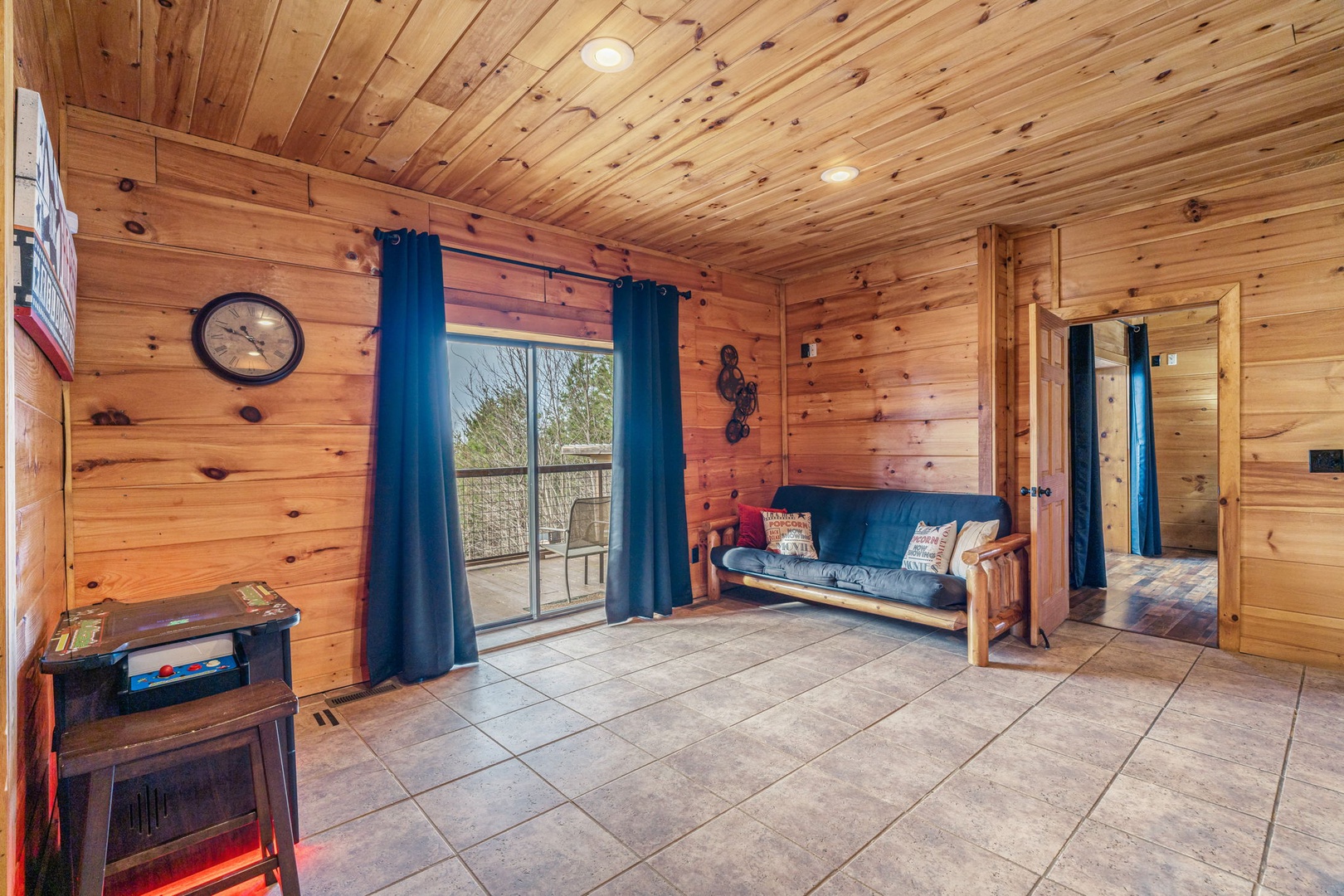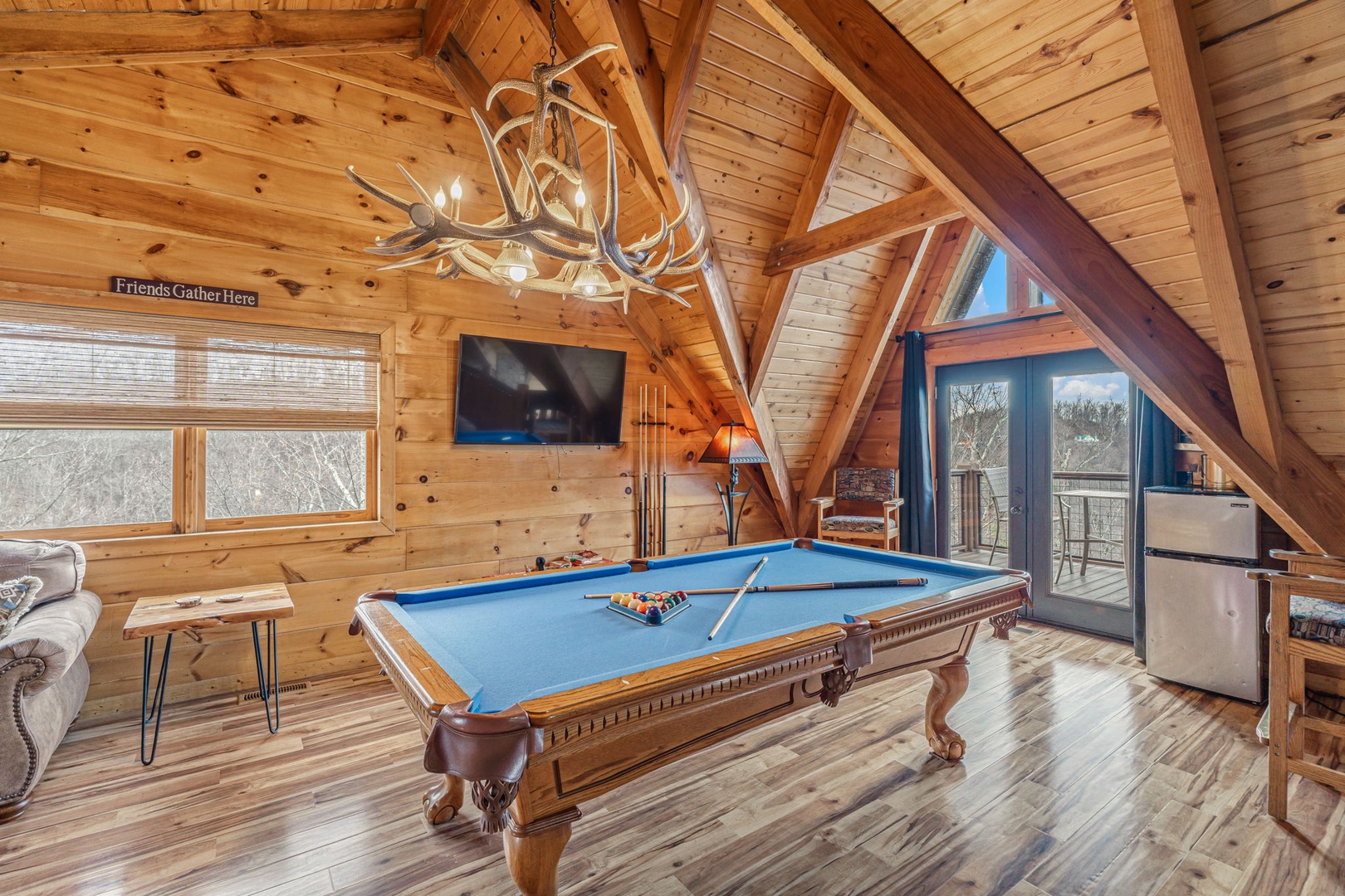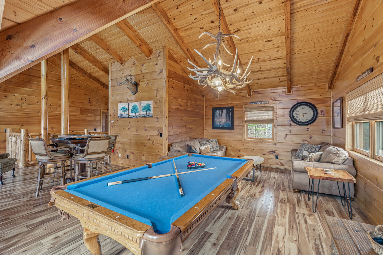 Inside, the lodge is built for connection and entertainment. Host movie nights in your private theater room. Challenge each other in the game room featuring a pool table and multi-cade arcade. Spread out across multiple levels so everyone has space to unwind while still feeling together.