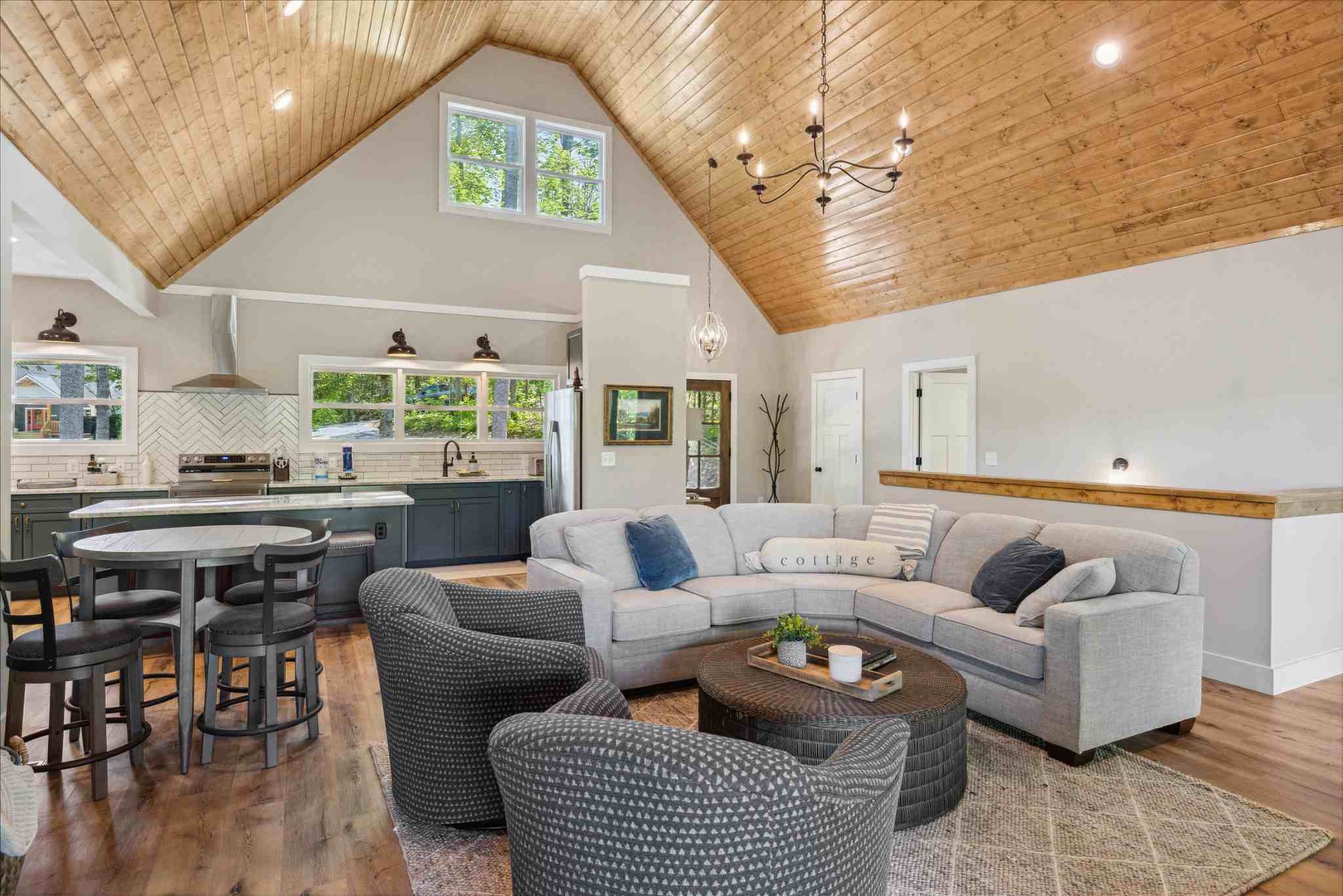 Gather in the cozy living area, cook together in the fully stocked modern kitchen, or enjoy friendly competition with games both indoors and outside. Step onto the covered porches and take in the calming water views, or wander down to your own personal dock for fishing, kayaking, or simply sitting with your feet over the water.
