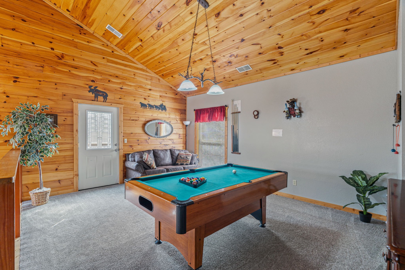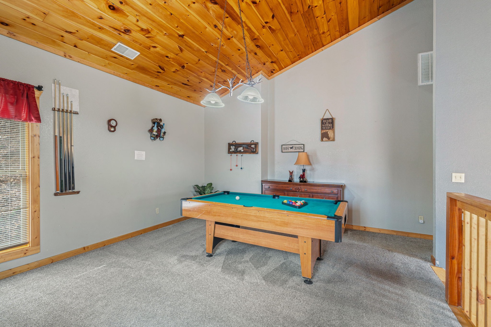 The fun game room is in the loft! Challenge friends and family to an exciting game of pool or step out onto the deck to enjoy the fresh mountain air. The outdoor spots here are to die for!