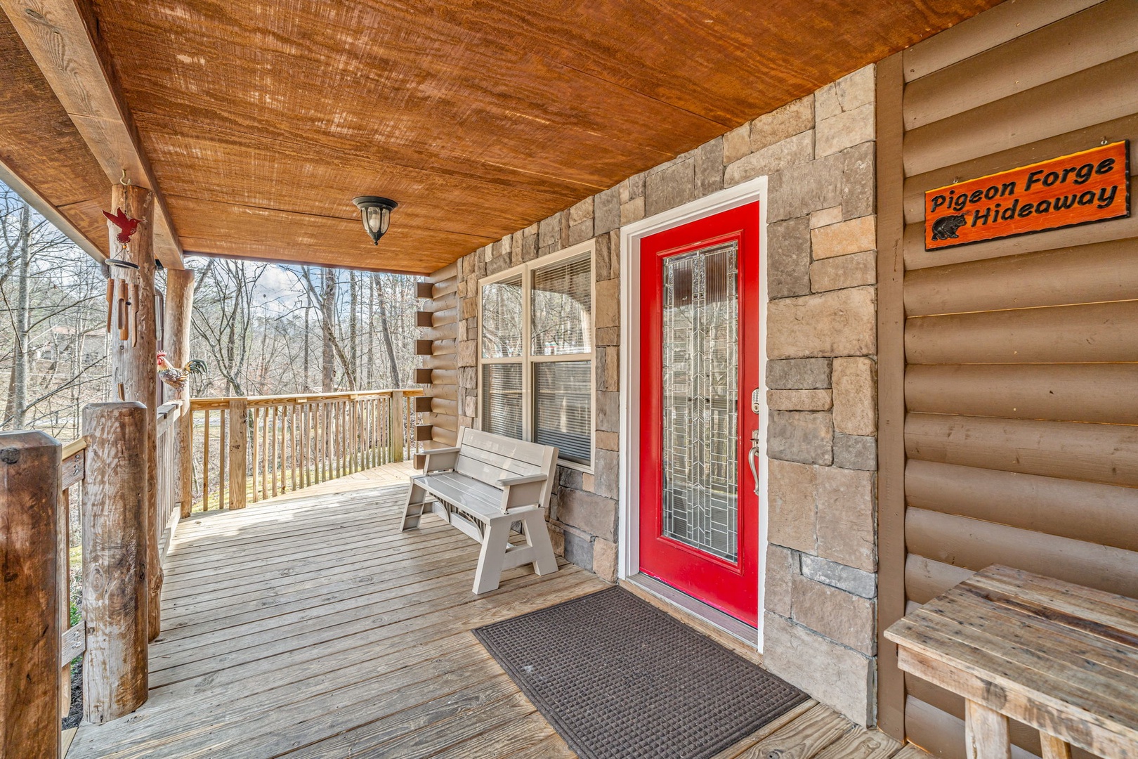 If you love the outdoors, Pigeon Forge Hideaway is the place to be! Grab a seat in one of the rocking chairs, sit on the porch swing or go for a dip in the bubbling outdoor hot tub! Soak away your troubles with a glass of wine under the stars! Pigeon Forge Hideaway is conveniently located near Dollywood and the entire Pigeon Forge Parkway, giving you quick access to attractions, shopping, and dining.